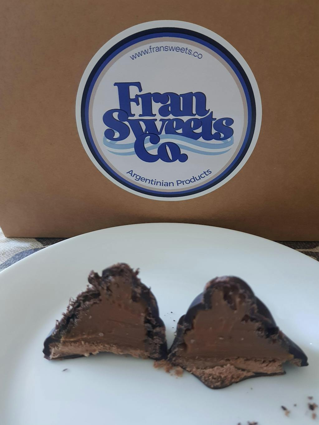In the base, a chocolate cookie. On top of it, 20 grams of glorious dulce de leche. All covered in delicious dark chocolate